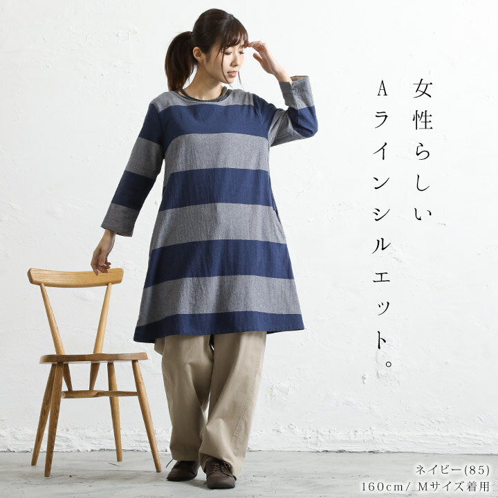 商品名:チュニック ワンピース ボーダー トップス レディース 太ボーダーワンピース Aラインワンピース 7分袖 大きいサイズ ゆったりサイズ クラウドナイン 綿100% cloud nine 7分袖 カジュアル 大人 かわいい ナチュラル 服 40代 50代 部屋着 [M便 1/1] ゆったり ボーダー ポケット付 涼しい 通気性 風通し 春服 夏服 大きめ 楽ちん おしゃれ 大人 かわいい ナチュラル 服 40代 50代 部屋着 ルームウェア nn-nlo7616-17太ボーダーがカジュアルな ワンピースです。
