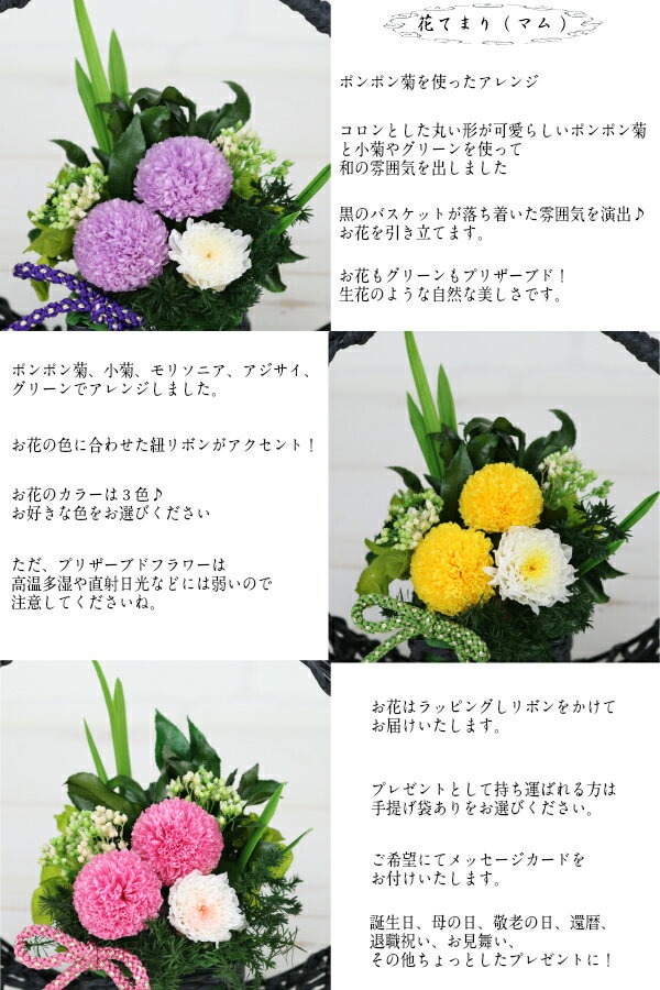 プリザーブドフラワー 和風 プチギフト バスケット かご 母の日 敬老の日 還暦祝い 誕生日 ブリザーブドフラワー ブリザードフラワー 送料無料:花てまりマム