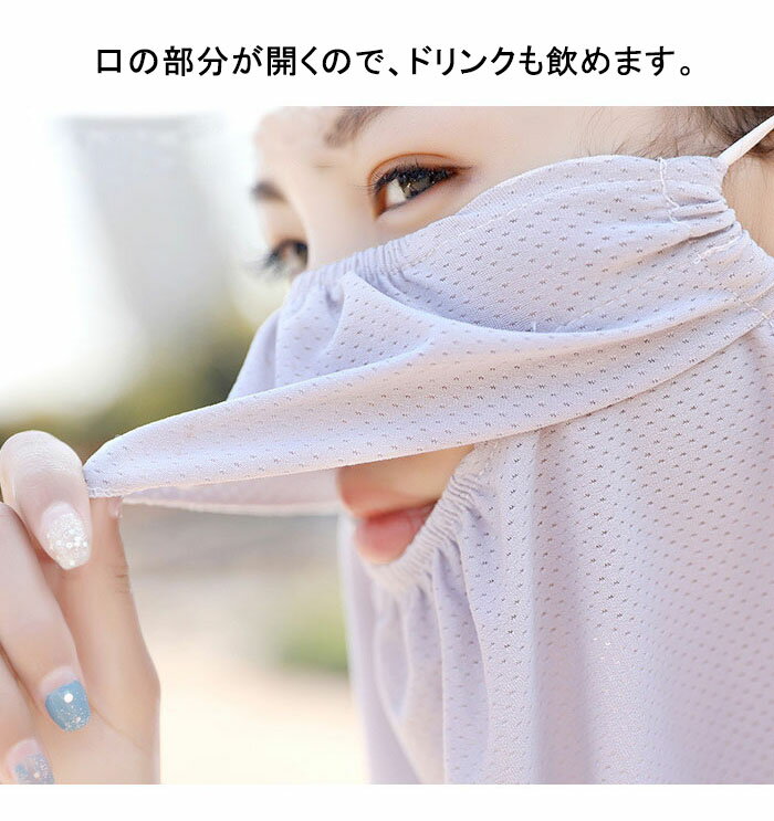 ロングタイプのため、首元まで覆うことが可能になる、日光を効果的に遮断する。
