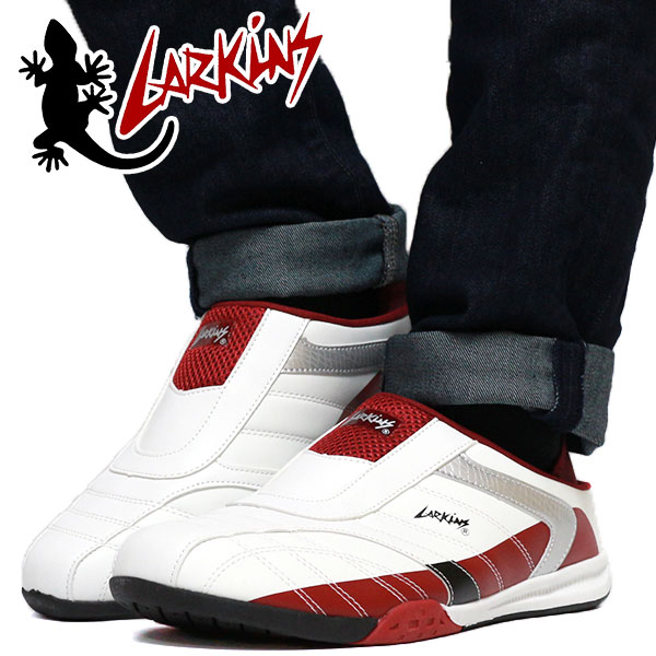 有料ラッピング対応■商品詳細 ■ブランド LARKINS ラーキンス ■商品名/品番 L-6340 ■カラー 1.ホワイト/レッド 白色/赤色 2.ホワイト/ブラック 白色/黒色 3.ブラック 黒色 ■取扱いサイズ 25.0cm 25.5cm 26.0cm 26.5cm 27.0cm ■素材 《アッパー》合成皮革 《アウトソール》合成底 ■ワイズ(横幅) ゆったり幅広3E(EEE)相当 ■靴の詳細 (25.0cm採寸) 《ソール高》接地面より約 2.5 cm 《履き口までの高さ》約 9.5 cm(ソール部分も含む) 《重量》片足 約 225 g ■サイズについて こちらの商品は【標準サイズより大きめ(幅広3E相当)】です。