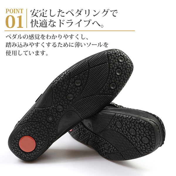 ・かかと部分までソールを伸ばすことでアクセルとブレーキを踏み変える動きをスムーズにします。