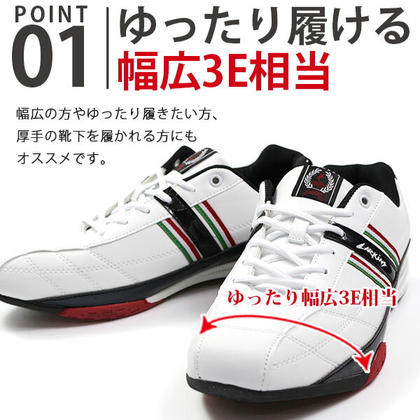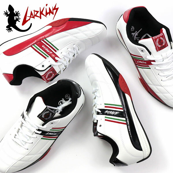 ) 有料ラッピング対応■商品詳細 ■ブランド LARKINS ラーキンス ■商品名/品番 L-6237 ■カラー ホワイト/ブラック 白色/黒色 ホワイト/レッド 白色/赤色 ■取扱いサイズ 25.0cm/25.5cm/26.0cm/26.5cm/27.0cm ■素材 《アッパー》合成皮革 《アウトソール》合成底 ■ワイズ(横幅) ゆったり幅広3E(EEE)相当 ■靴の詳細(26.5cm採寸) 《ソール高》接地面より約 2.5 cm 《履き口までの高さ》約 7.0 cm(ソール部分も含む) 《履き口周り》紐で調節出来ます 《重量》片足 約 292 g ■サイズについて こちらの商品は【標準サイズより大きめ(幅広3E相当)】です。