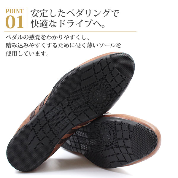 ・かかと部分までソールを伸ばすことでアクセルとブレーキを踏み変える動きをスムーズにします。