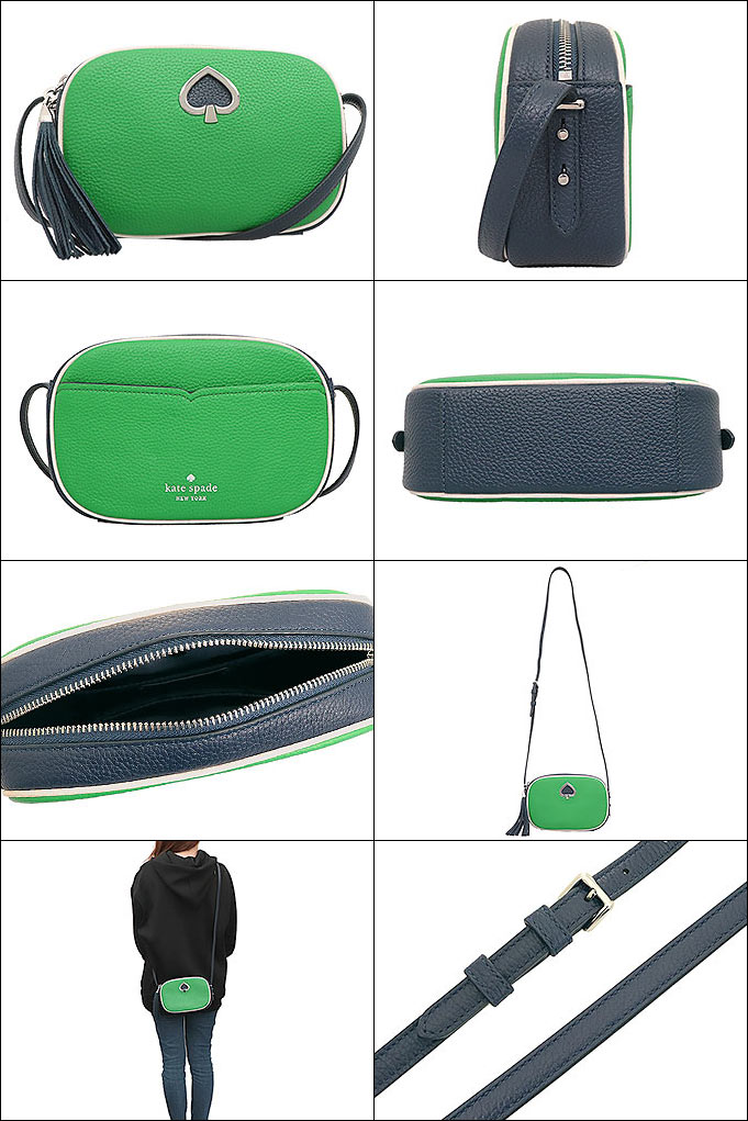 グリーン×ネイビーの柔らかなレザーに定番のスペード金具がオシャレなショルダーバッグです。