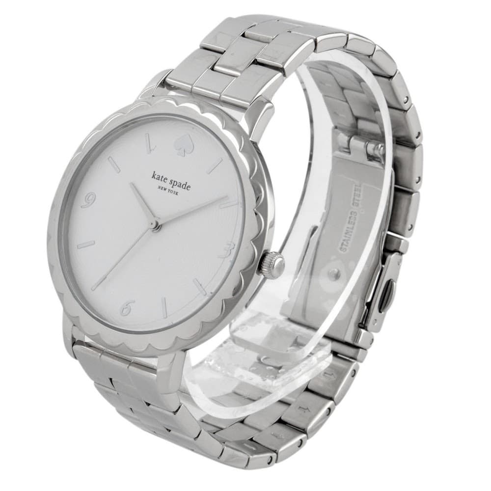 【191118KATE】ITEM INFORMATIONケイトスペード KATE SPADE KSW1493 メトロ レディース 腕時計サイズケースサイズ:H約38mm x W約38mm x D約6mm素材ケース素材:ステンレススチール / ベルト素材:ステンレススチール / ガラス素材:ミネラルクリスタルガラスカラー文字盤カラー:ホワイト / ケースカラー:シルバー / ベルトカラー:シルバームーブメントクォーツ重量約75g防水性日常生活防水保証期間1年間(時計の機械以外のパーツなど、修理が出来かねる場合がございます)付属品専用BOX、国際保証書 兼 取扱説明書 (予告なく仕様が変わることがございます)特徴プッシュ式三つ折れバックル備考※当社では、スタジオでストロボを使用して撮影しており、sRGB環境にて画像の補正を行っておりますが、お客様のモニターを通してご覧になって頂いている為、実物を蛍光灯や自然光の下でご覧になった場合と色味が異なる場合がありますので、ご理解の上ご購入頂きますようお願い致します。