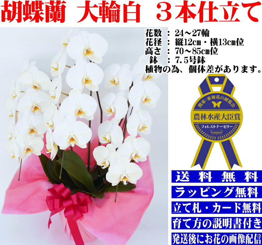 胡蝶蘭大輪 白3本仕立て 植物の為、個体差があります。